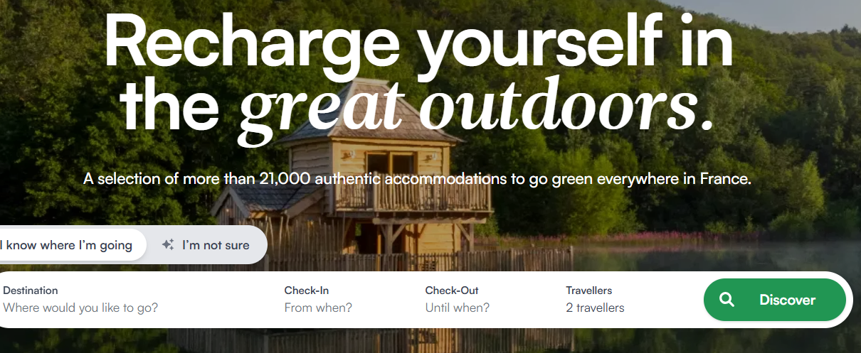 Greengo.voyage est une plateforme de réservation d’hébergements touristiques créée en 2021 par deux entrepreneurs français passionnés par la nature et désireux de transformer notre manière de voyager. Le concept est simple : réconcilier tourisme et écologie. Greengo sélectionne avec rigueur des logements écoresponsables partout en France, tout en privilégiant les destinations accessibles sans avion.