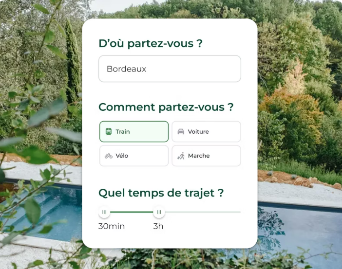 - Possibilité de filtrer par critères : accessible en train, label écologique, animaux acceptés, etc.